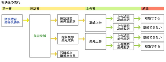 現在のところ、美元さん側の弁護士は控訴で結論が変わる(離婚しないと勝てる可能性)と述べていますので、控訴はなされる見通しになります。